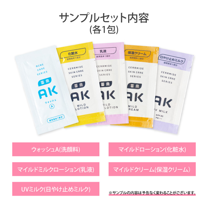| 内容量 | ・薬用AKマイルドクリーム 50g ×1本 ・薬用AKマイルドローション 250mL ×1本 |